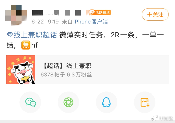 幾個月前,姜瑞經(jīng)介紹加入一個兼職群。經(jīng)過簡單培訓(xùn),她成了一名“水軍”。姜瑞說,主要工作內(nèi)容是在微博宣傳明星動態(tài)、影視作品,由派單人發(fā)送任務(wù),群內(nèi)的兼職“水軍”搶單,隨后在微博內(nèi)發(fā)送撰寫好的宣傳文案?!爸灰猩缃毁~號就能掙這個錢?!?/p>