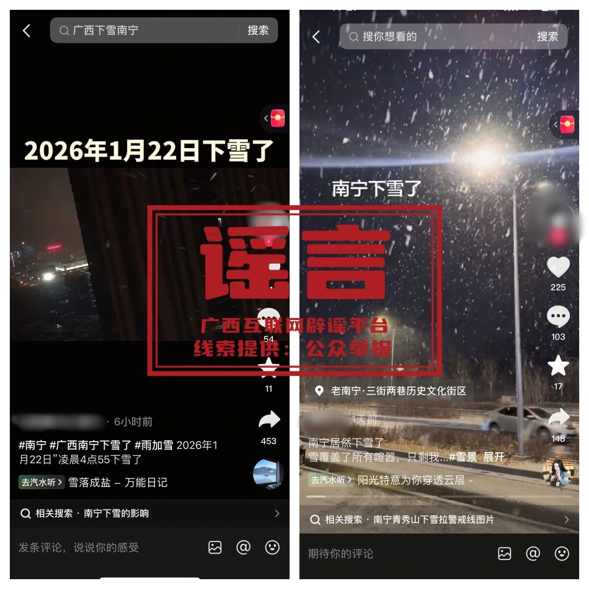 在此,特別提醒廣大網(wǎng)民:注意留意廣西氣象臺(tái)等官方渠道發(fā)布的權(quán)威天氣預(yù)報(bào),合理安排出行計(jì)劃,把防寒保暖的功課做足。同時(shí),也要牢記,用 AI 技術(shù)生成的內(nèi)容必須進(jìn)行顯著標(biāo)識(shí),不按規(guī)定標(biāo)注的話可能觸犯相關(guān)法規(guī)。面對(duì)網(wǎng)絡(luò)上那些沒(méi)經(jīng)過(guò)證實(shí)的消息,尤其是那些博人眼球的 “奇觀” 類(lèi)內(nèi)容,務(wù)必多留個(gè)心眼,既不要輕信盲從,更不要隨手轉(zhuǎn)發(fā)擴(kuò)散,讓我們一起攜手守護(hù)清朗有序的網(wǎng)絡(luò)家園。